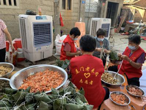 2020年端午节前夕,翔安区马巷镇窗东社区开展“粽叶飘香过端午,疫情不减助老情”的端午节活动,为社区60岁以上老年人送去1162粒爱心肉粽,为70岁以上老年人送去484粒粽子和484包面线。开展此次活动所耗费的食品、炉灶、煤气等物资,全部来自社区爱心人士和爱心企业的捐赠,辖区居民也纷纷通过志愿为老服务,一起助力爱心敬老活动,为“爱心厦门”建设添砖加瓦。