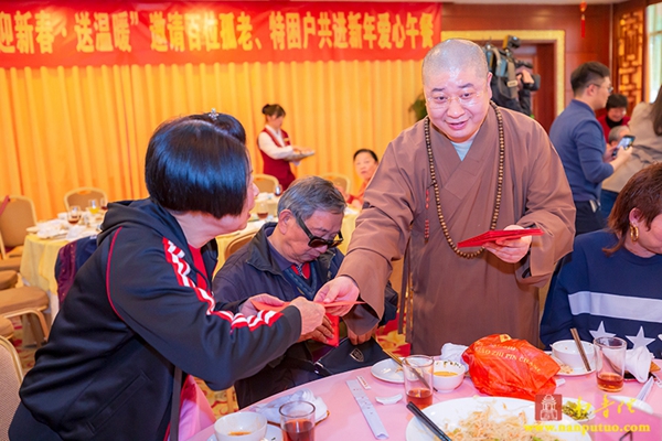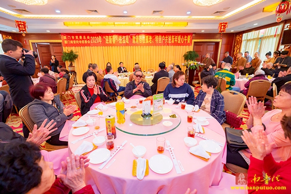 慈善午宴是厦门南普陀寺慈善会与厦门市慈善总会开展“新春送暖慰问”项目的重要活动之一,也是慈善会关怀长者、慰问困难户的传统慈善实践,已经连续举办17年。在南普陀寺普照楼宴会厅,13桌素宴依次排开。中国佛教协会副会长、厦门南普陀寺慈善会会长则悟大和尚,厦门市人大常委会原副主任、市慈善总会会长杨金兴,厦门市民政局副局长李丽红,厦门市民宗局副局长张智等领导嘉宾出席慈善午宴。午宴由南普陀寺慈善会副会长兼秘书长弘来法师主持。