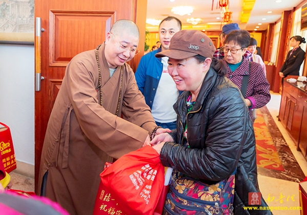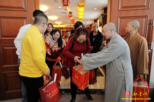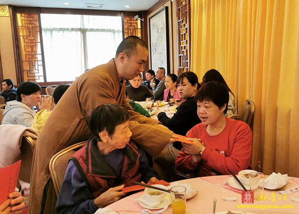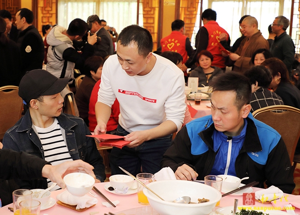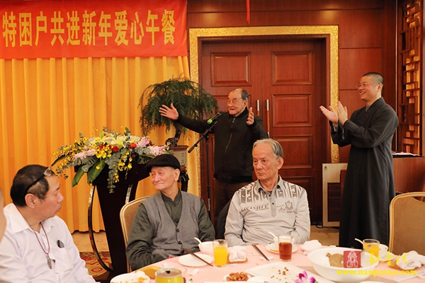 南普陀寺慈善会会长则悟大和尚在致辞中表示,党的十八大以来,以习近平同志为核心的党中央提出了“精准扶贫”的号召,带领全国人民为打赢脱贫攻坚战、决胜全面建成小康社会而不懈奋斗。省委常委、厦门市委胡昌升书记在“爱心厦门”建设动员大会上提出,要“发动全市人民广泛开展敬老助残济困等爱心行动”。在这样的背景下,这次活动更显意义殊胜。希望通过团圆相聚、共宴饮食的形式,传递大爱温情、送上新年祝福、弘扬慈善文化,让佛教慈善普惠更多困难人群,促进社会和谐与爱心城市建设;更希望大家日子过得越来越好,“但使新年胜旧年”。则悟大和尚说,这个活动能够连续举办十七年,实为不易。厦门市慈善总会坚持一起开展这个项目,把活动做好、做出特色、形成传统,使这个活动成为了凝聚慈善力量、关爱弱势群体、广结善缘福报的重要平台,在此也由衷地希望活动能够让越来越多的社会爱心人士受到鼓舞与感染,加入到慈善队伍中,一起造福社会、共同帮助困难群众,共建和谐、互助、友爱、美好的“爱心厦门”。