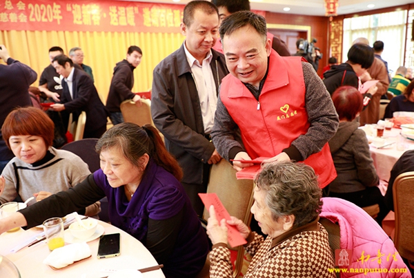 “爱心厦门”在行动,新春佳节来临之际,为让困难群众度过一个温暖祥和的新年,1月4日,厦门南普陀寺慈善会与厦门市慈善总会联合举办“迎新春·送温暖”慈善午宴,百位孤老、特困户、社区工作者和爱心人士近140人欢聚一堂,共享“慈膳”,欢度愉快的新年,这是贯彻“爱心厦门”建设动员大会精神的又一具体行动。