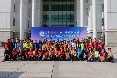 3月21日,厦门市民政局、市社会工作协会、集美大学法学院在集美大学嘉庚图书馆前广场举办2018年社会工作专业就业与实习专场招聘会,60家社会服务机构(公司)参会,提供就业(实习)岗位530个。来自国内各高校学生、应届毕业生及社会人员约600人参加了招聘会,共有近150人达成了就业或实习意向。这是厦门市首次举办此类专场招聘,厦门电视台《特区新闻广场》和《新闻观察》栏目、福建电视台《福建新闻联播》栏目都进行了专门的报道。