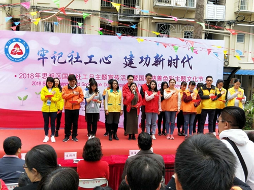 今年3月20日是第12个国际社工日。为贯彻党的十九大精神,深刻把握党的十九大对保障改善民生、创新社会治理的新要求,营造良好氛围,推动社会工作在新时代实现新发展,厦门市以国际社工日为契机,将3月17日至26日定为2018年社会工作宣传周,围绕“牢记社工心,建功新时代”主题,多形式、多角度开展了一系列宣传活动,较好地展示了社会工作服务风采和成果,有效凝聚了社会工作发展力量和信心,向社会大众传播社会工作知识和理念,为社会工作发展营造了浓厚的舆论氛围、创造了良好的发展环境。